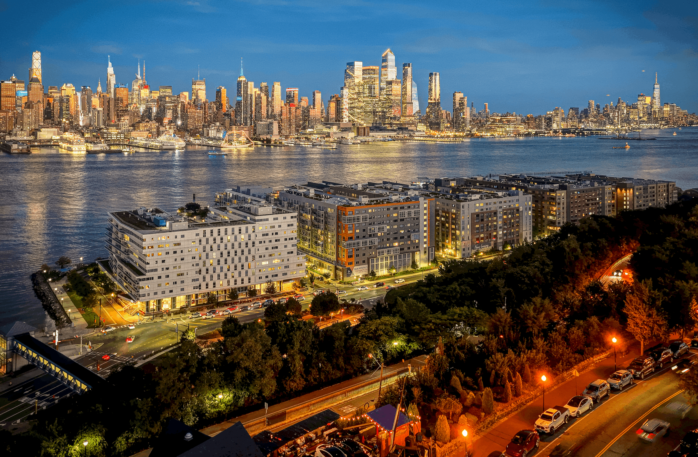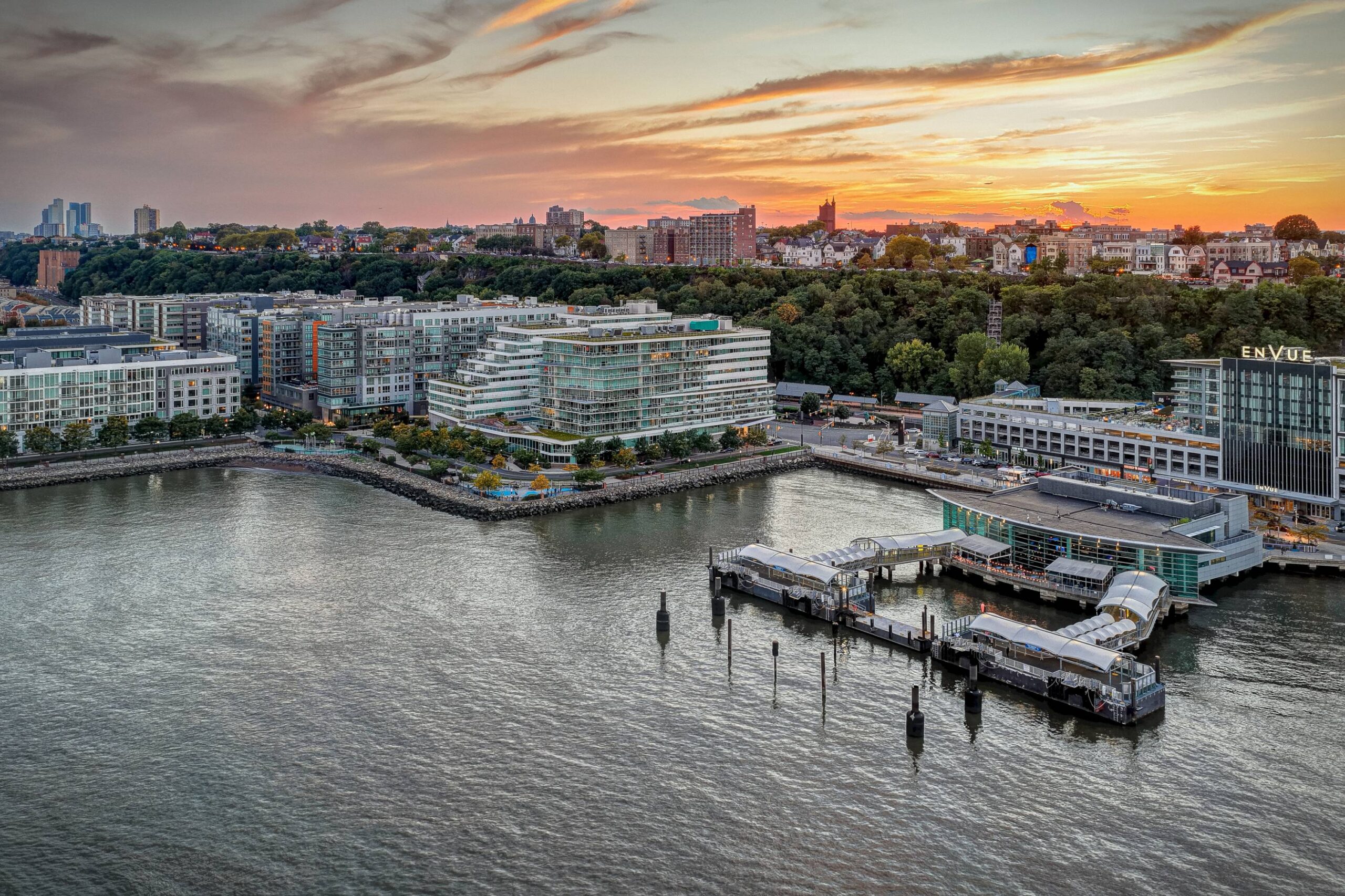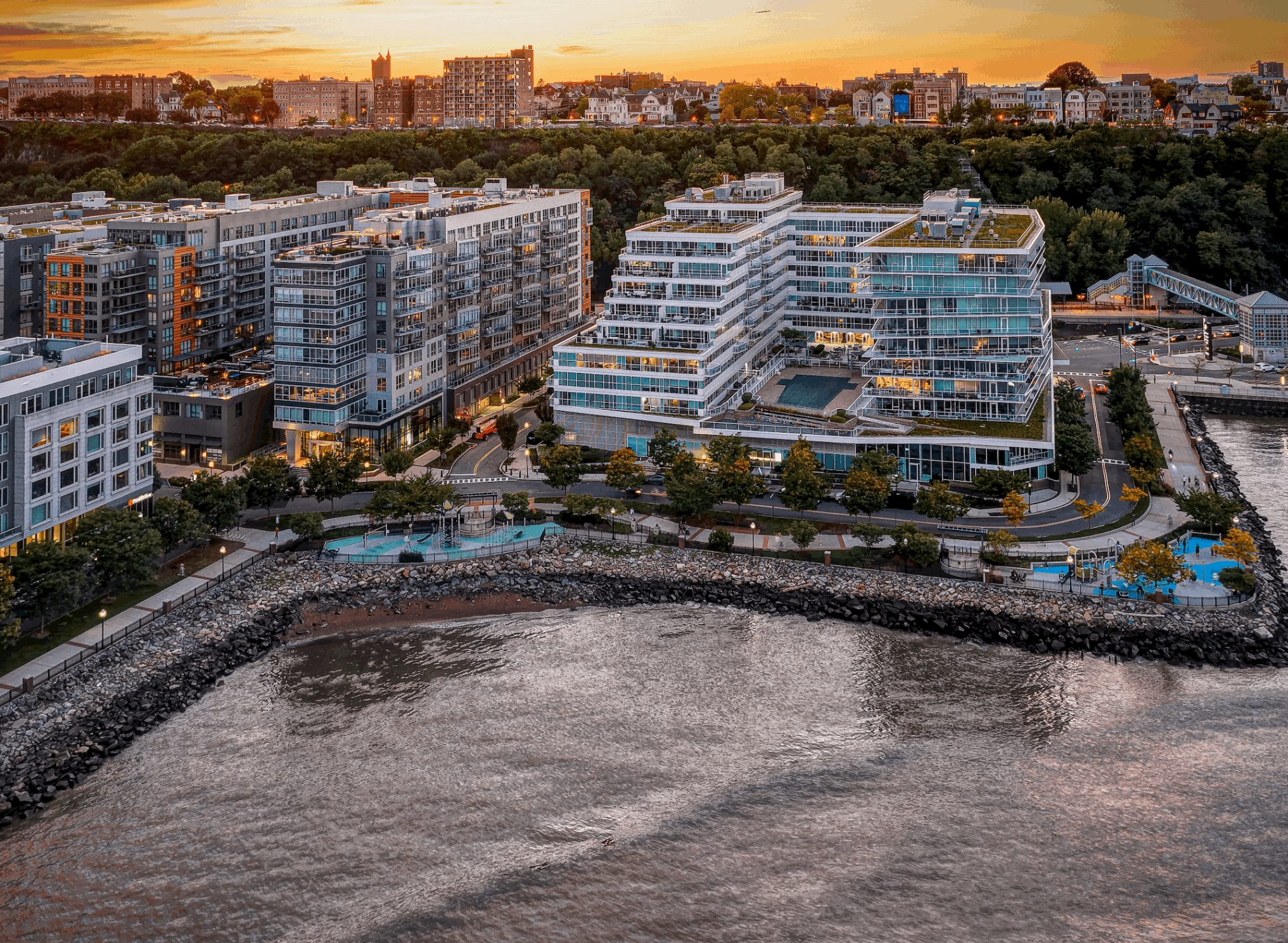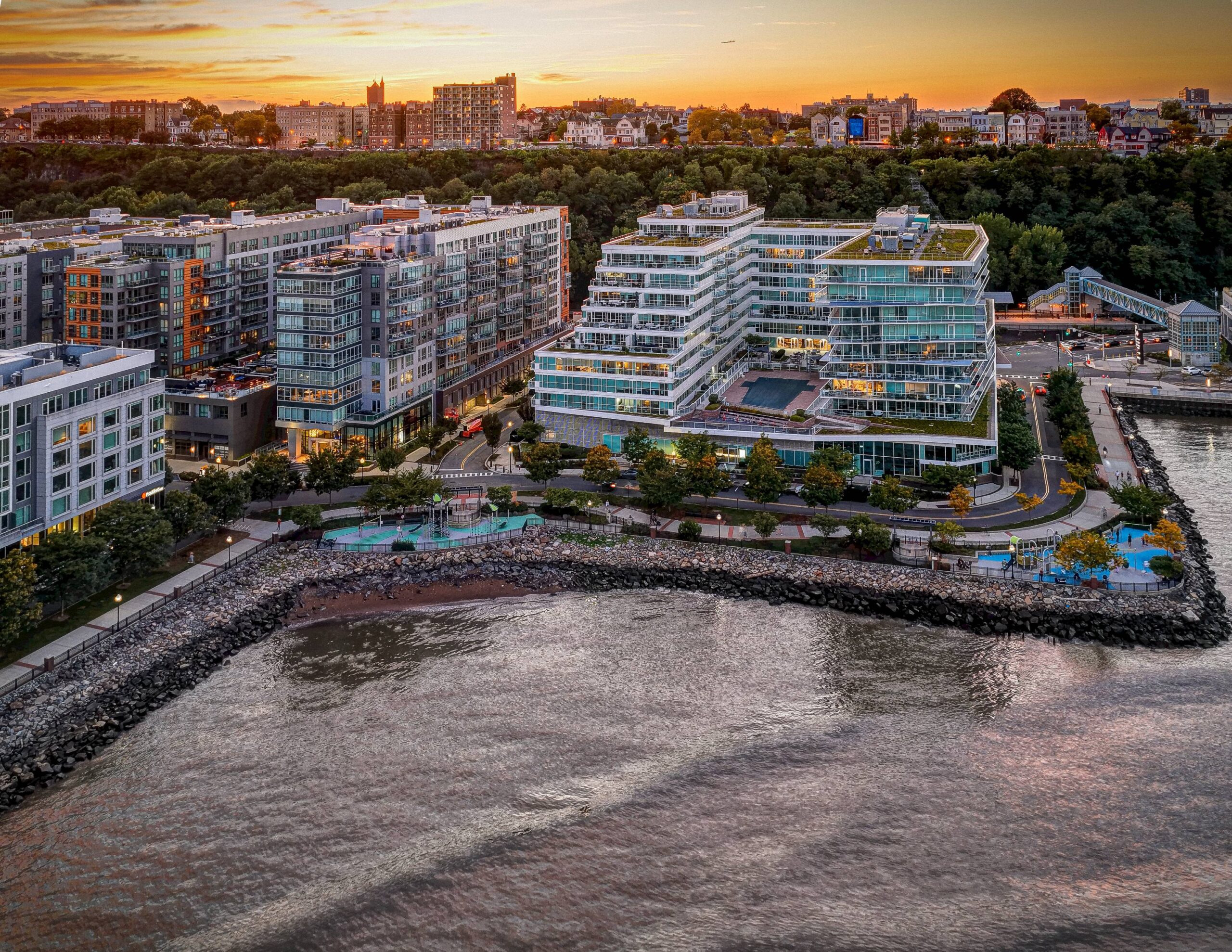 Port Imperial is located on the Hudson River Gold Coast in West New York, Hudson County, New Jersey, which is one of the strongest rental markets in the country, benefiting from a surging market in Manhattan with tight inventory and very few planned construction starts due to expiration of the 42 la tax abatement. It is a 200-acre master-planned waterfront community permitted and developed by Canoe Brook’s predecessor company, Roseland Property Company, over the past 24 years. It is a $4 billion master-planned development comprised of over 7,500 rental and for-sale apartments and townhomes, 150,000 SF of retail, two Marriott hotels, two public garages servicing the NY Waterway ferry terminal, and over 20 acres of public space including: parks, sports fields, outdoor retail plazas and a riverfront walkway that extends two-miles long. Upon completion, Port Imperial will represent one of the largest and most valuable single planned developments in the history of the state of New Jersey – offering residents direct access to midtown and downtown Manhattan and the surrounding area. This redevelopment will be the first in the community to seek a LEED Platinum designation for sustainability efforts, and is on track to LEED Platinum certification.